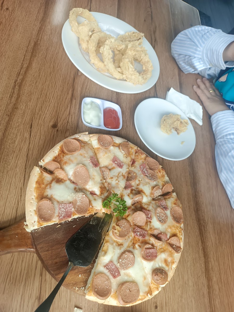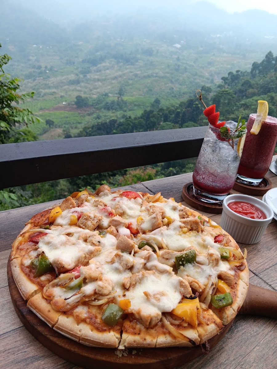 Place is very nice, good for family time. Some part are still under construction but current implementation already good enough to explore. The view is very amazing. Food is not very good. The fried rib is recommended, I tried the pasta and cordon bleu, both are disappointing. Especially anything with cheese. The cheese seems to be cheap or bad ones as the taste is destroying the food. I prefer to not use the cheese at all as the cordon bleu is okay. Pizza is quite good and recommended. Price is fair, and there are limited parking lot.